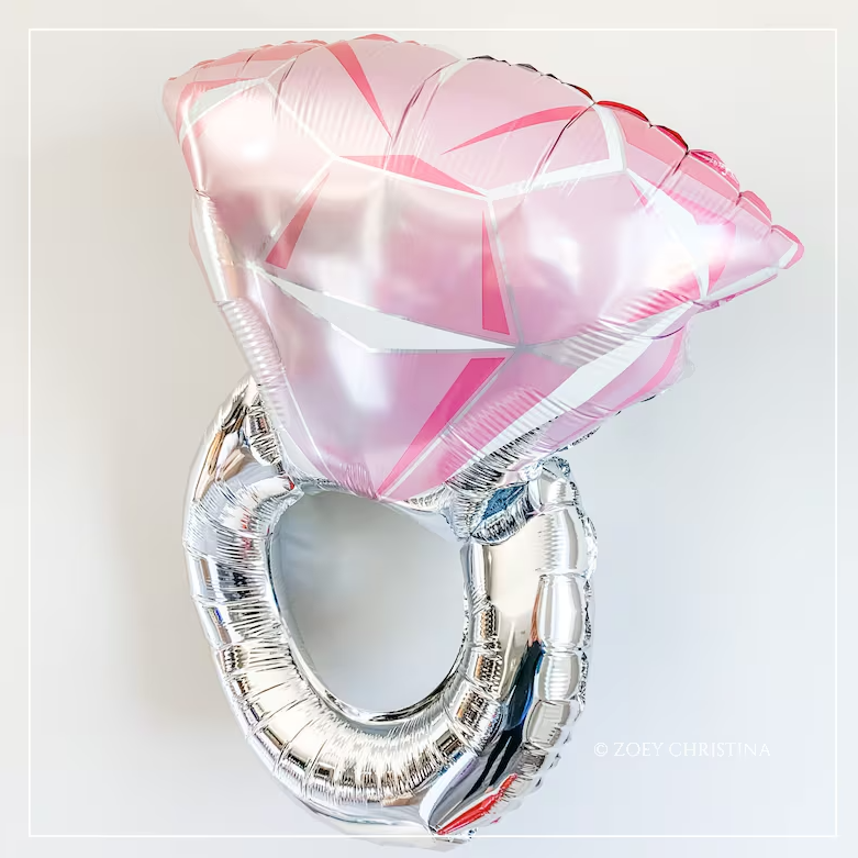 Spread the joy of love with this Pink Engagement Ring Foil Balloon, a charming addition to your Valentine's Day offerings. This delightful balloon captures the essence of romance with its vibrant color. It's an eye-catching piece that's sure to brighten up any romantic setting.